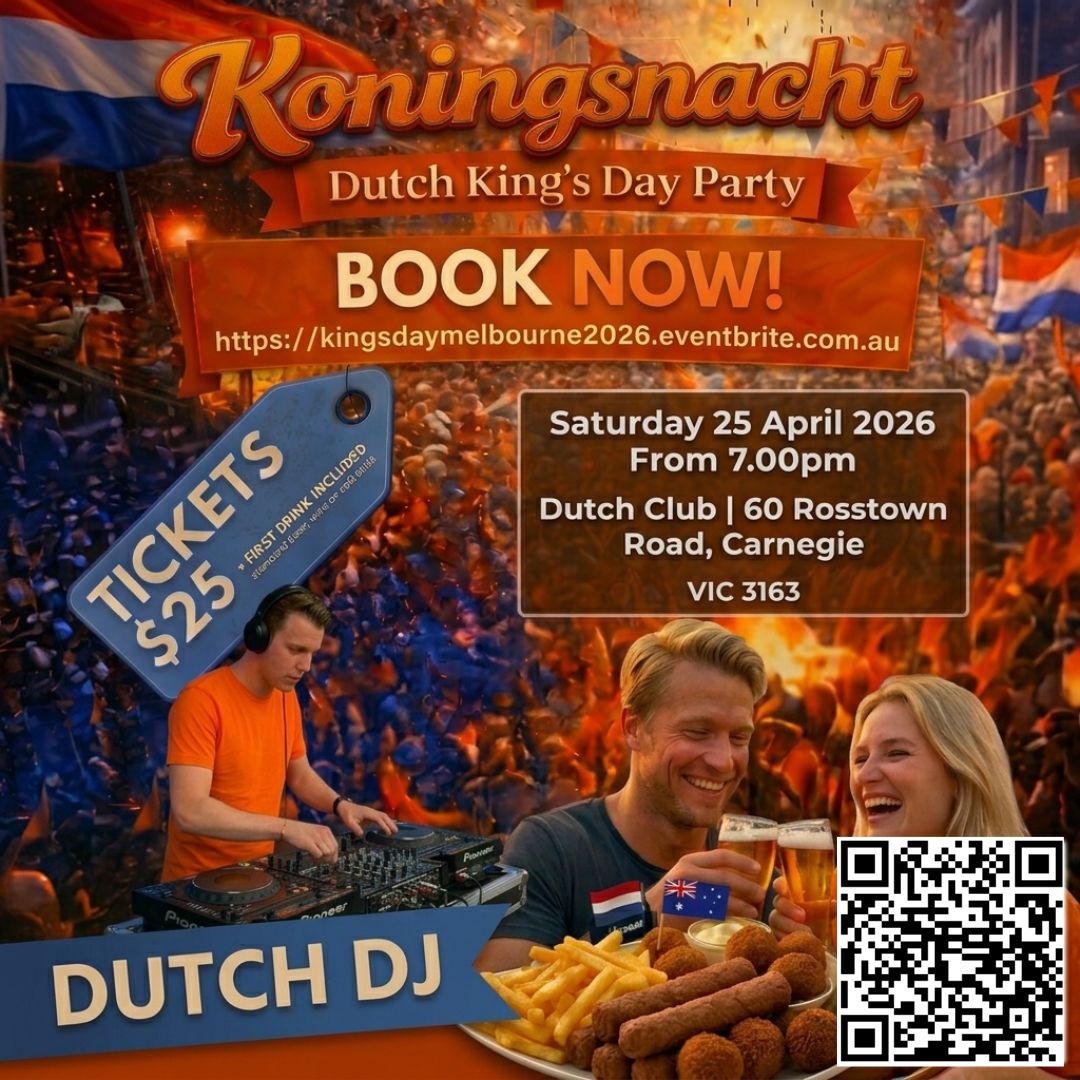 This event is hosted by the Dutch Club Melbourne. Tickets and enquiries via Eventbrite.